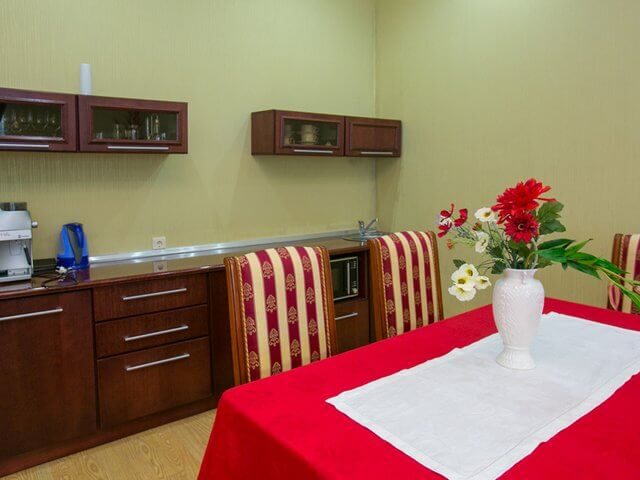 Для гостей санатория организовано питание по следующему расписанию: завтрак: 08:45 — 10:00, обед: 12:45 — 14:15, полдник: 12:45 — 14:15, ужин: 17:45 — 19:00, второй ужин (кефир): 17:45 — 19:00.