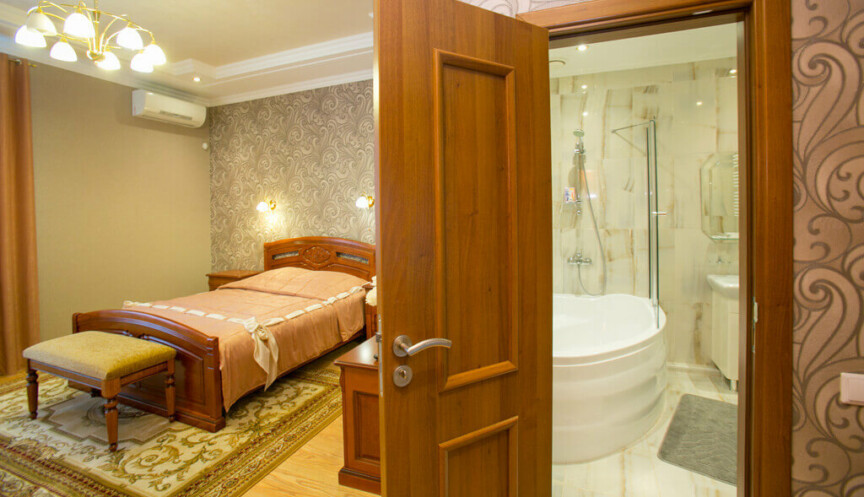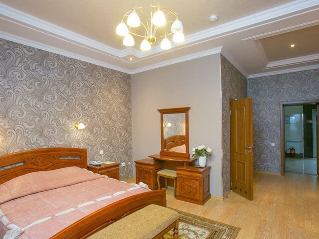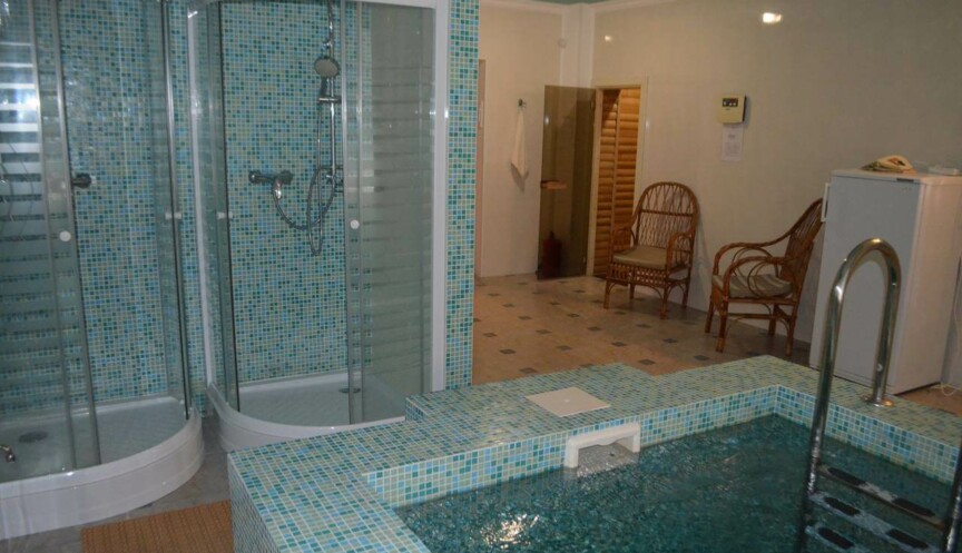 Двухкомнатный номер в коттедже (№18) возможно 1 доп.место / диван — доп. место для взрослых и детей. В номере: душ, туалет, умывальник / 2-спальная кровать, Wi-Fi, свч-печь, тв, телефон, терраса, холодильник, чайник